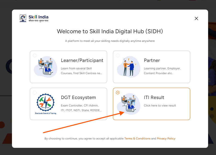 - From the options—Learner, Partner, ITI Partners—select ITI Result.